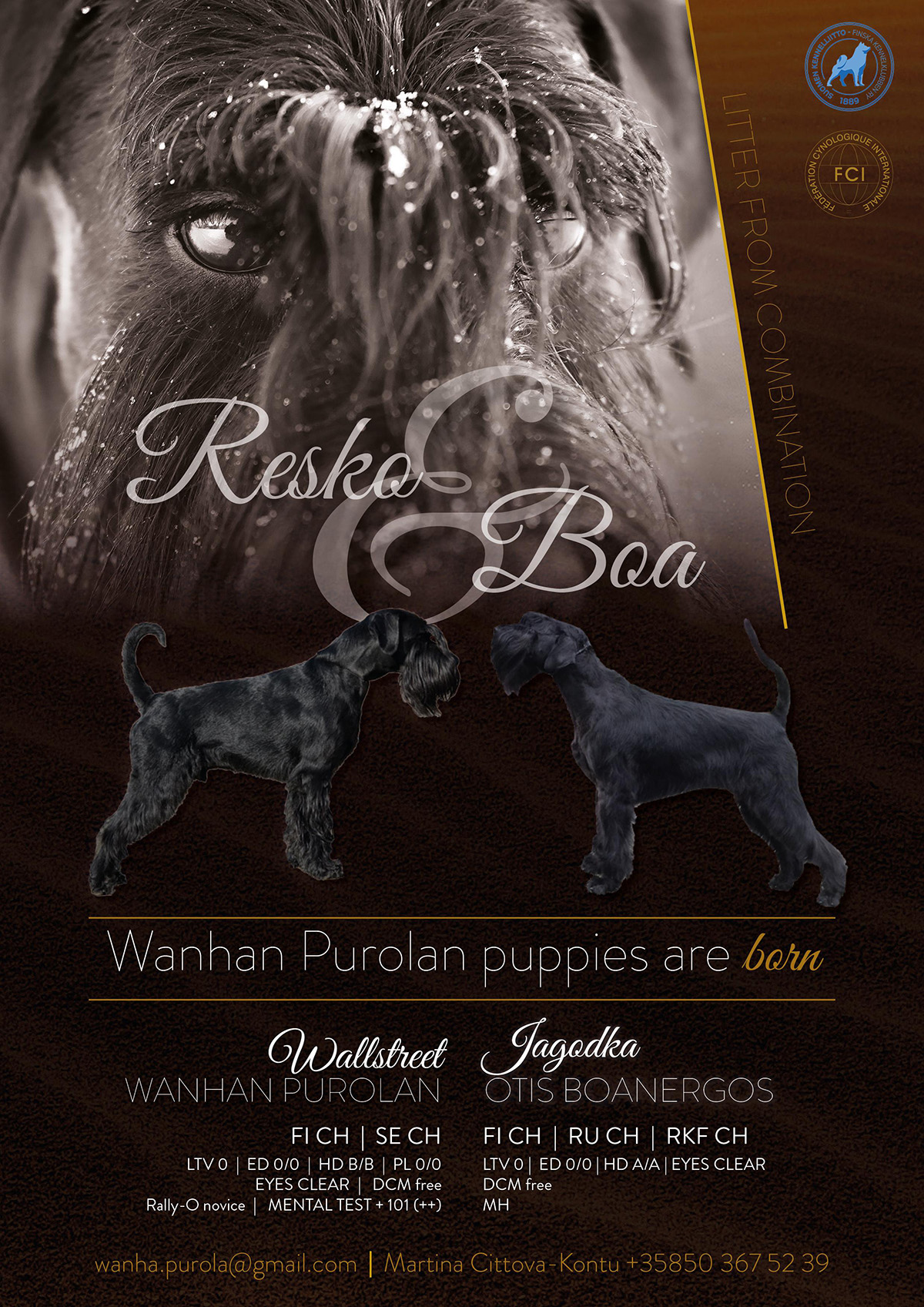 sire: RN RA AD C.I.B NORD CH FI CH SE CH NO CH DK CH EE CH LV CH RU CH RKF CH Wanhan Purolan Wallstreet